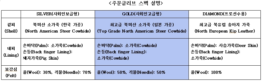 선별하여 만든 최고급 제품으로서, 한국의 유명 주문글러브업체에
